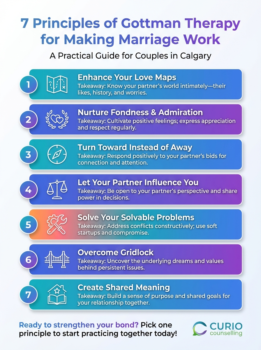 The post Gottman’s 7 Principles For Making Marriage Work: The Calgary Couple’s Step‑By‑Step Guide To A Stronger Relationship appeared first on Curio Counselling.